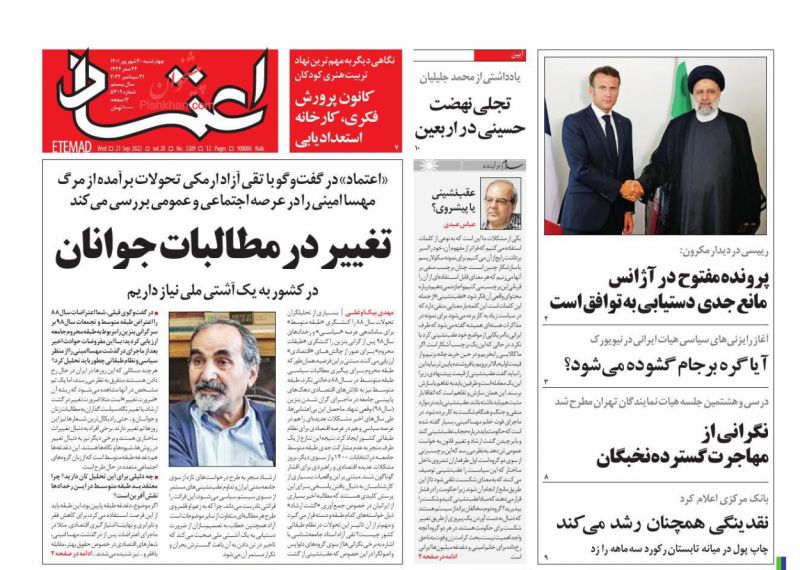 اعتماد ، چهارشنبه ۳۰ شهريور