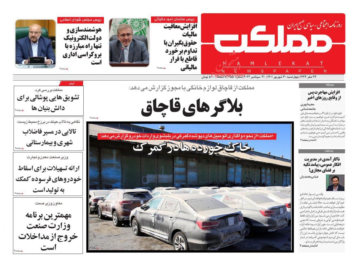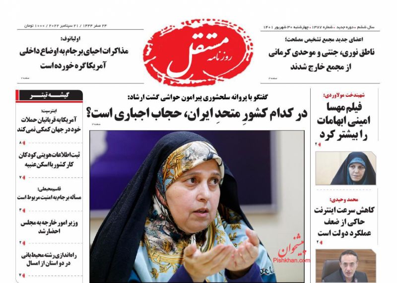 مردم سالاری ، چهارشنبه ۳۰ شهريور