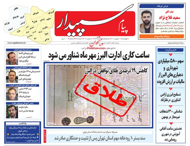 صدای اصلاحات ، چهارشنبه ۹ شهريور