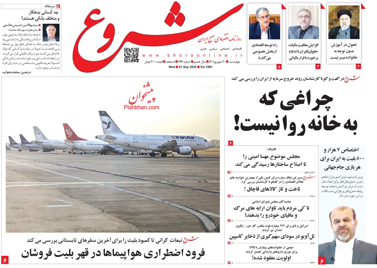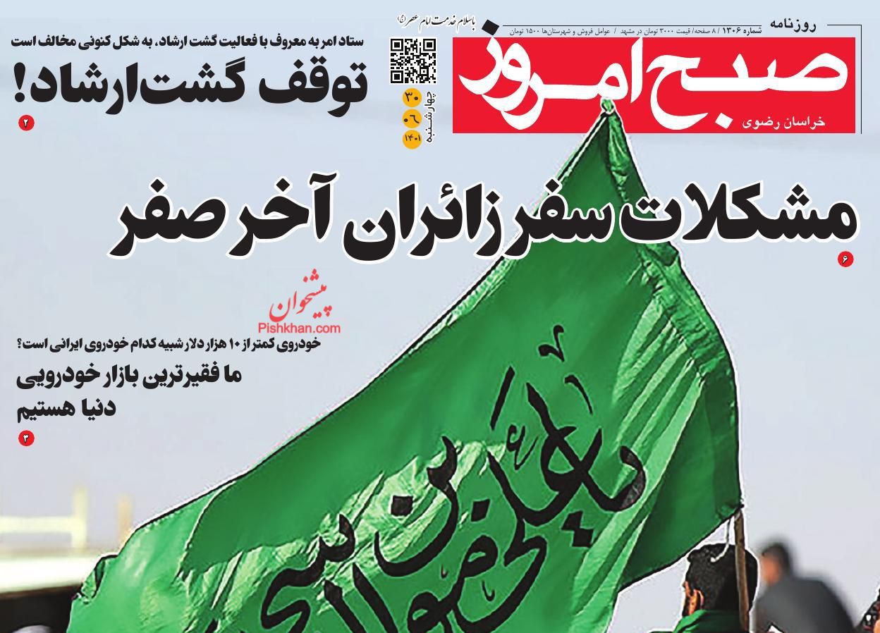 صبح امروز ، چهارشنبه ۳۰ شهريور
