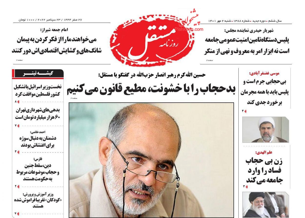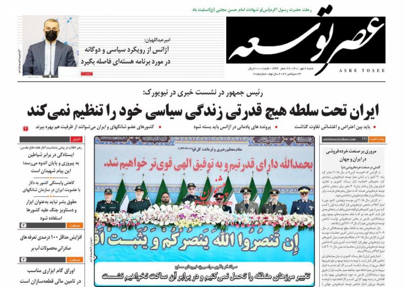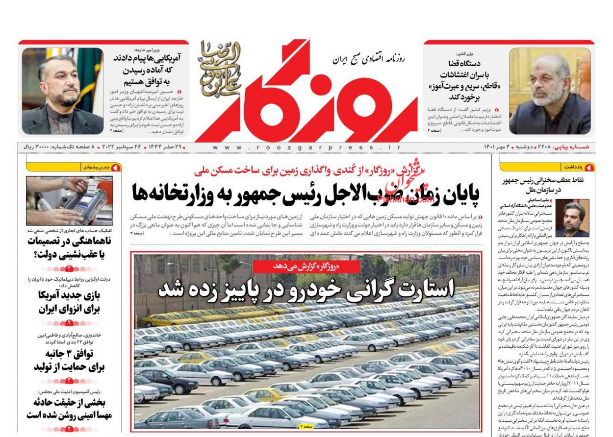 عصر ایرانیان ، دوشنبه ۴ مهر