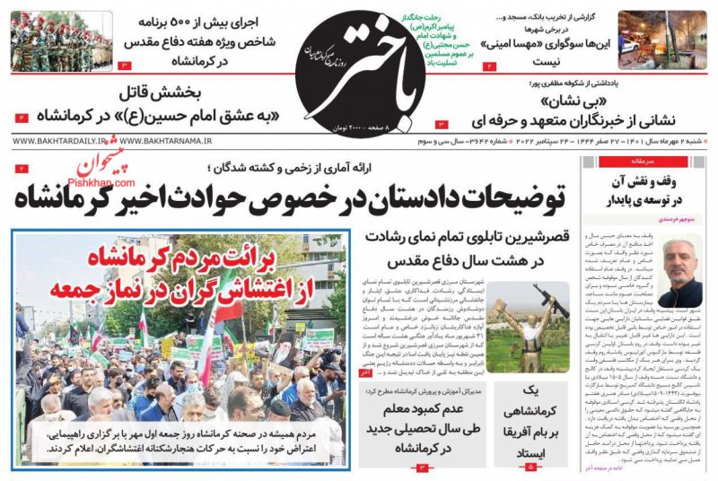 سپهر ایرانیان ، چهارشنبه ۳۰ شهريور