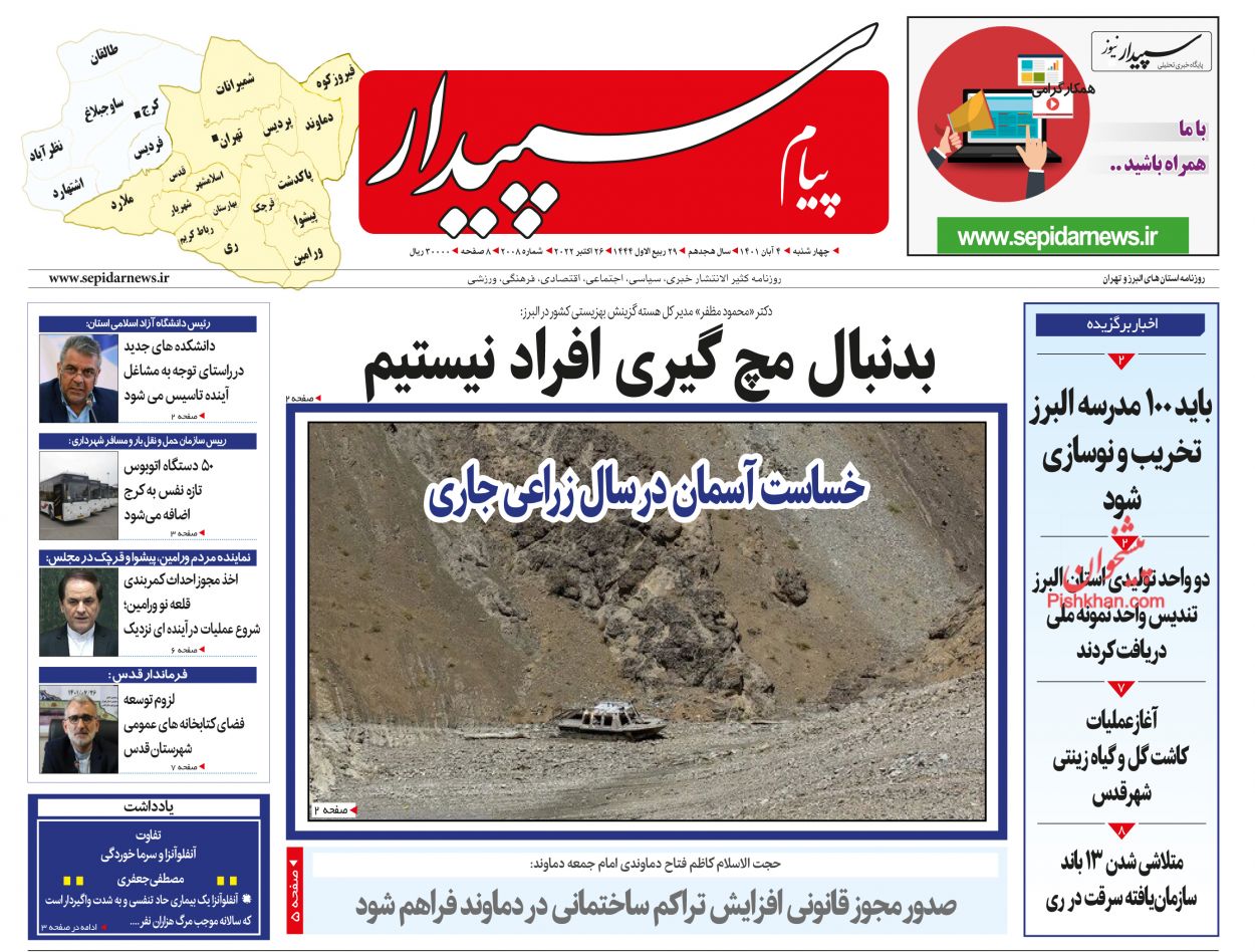 پیام سپیدار ، چهارشنبه ۴ آبان