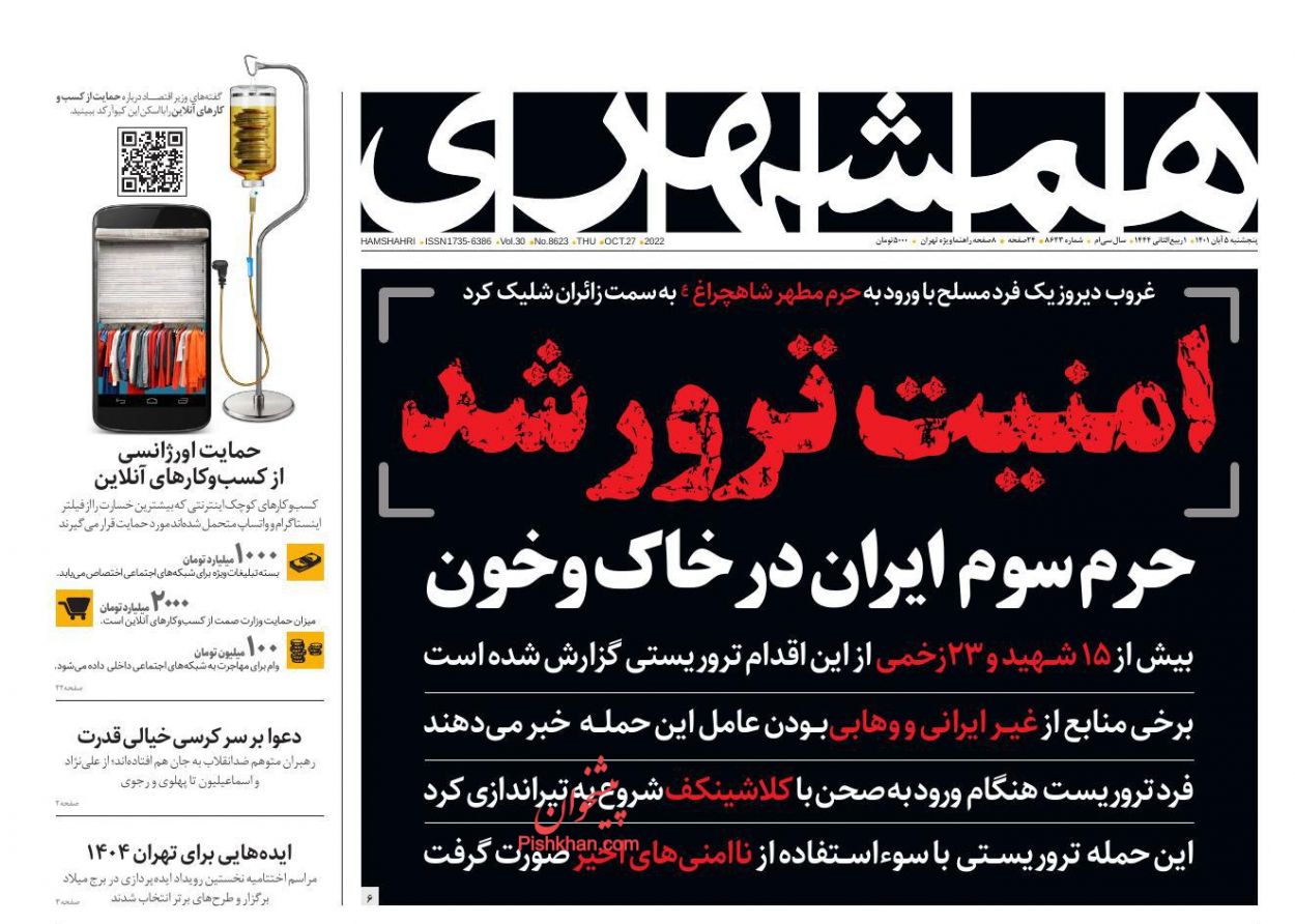 جمهوری اسلامی ، پنجشنبه ۵ آبان