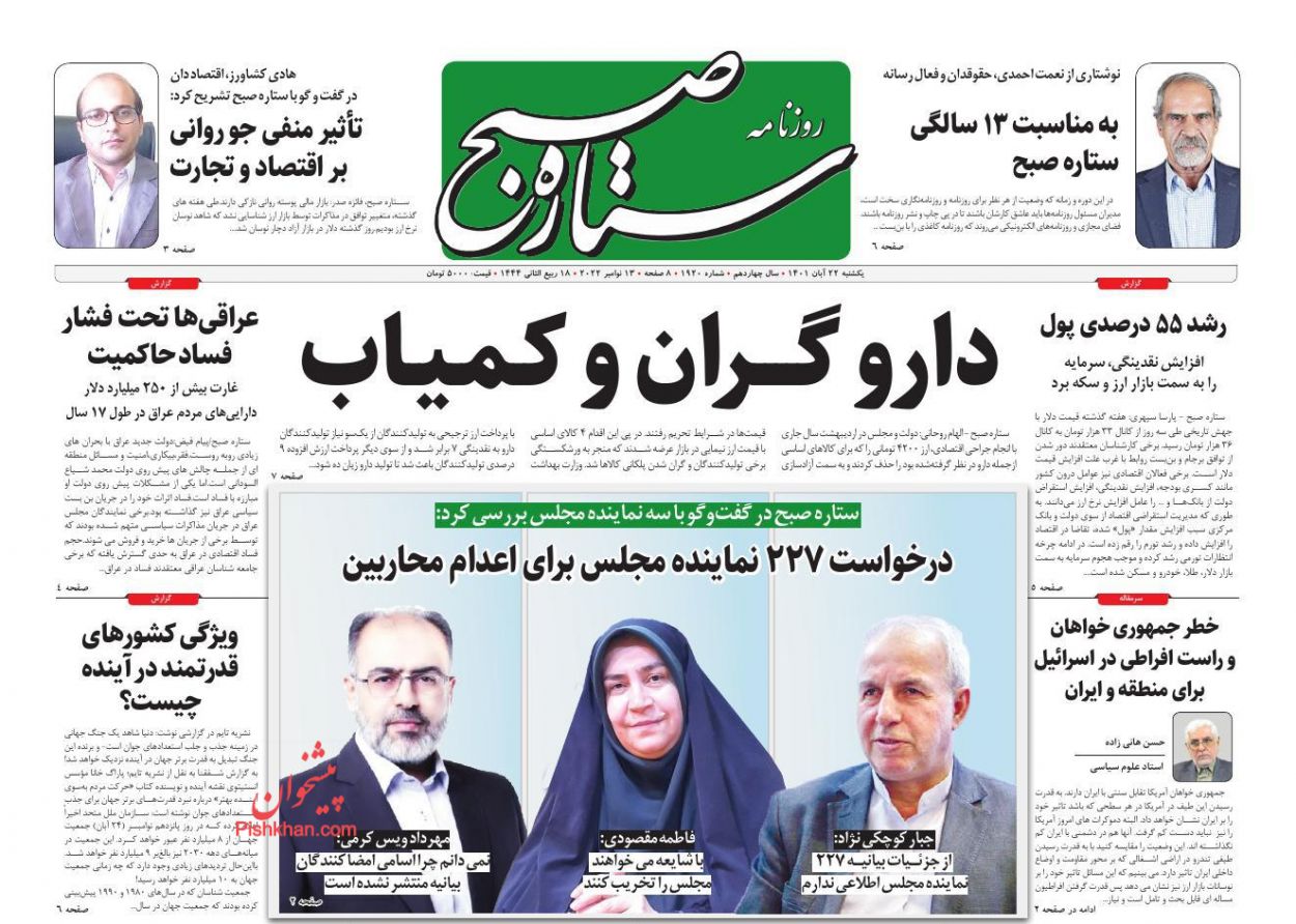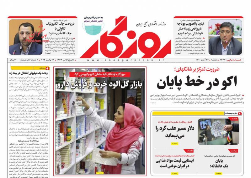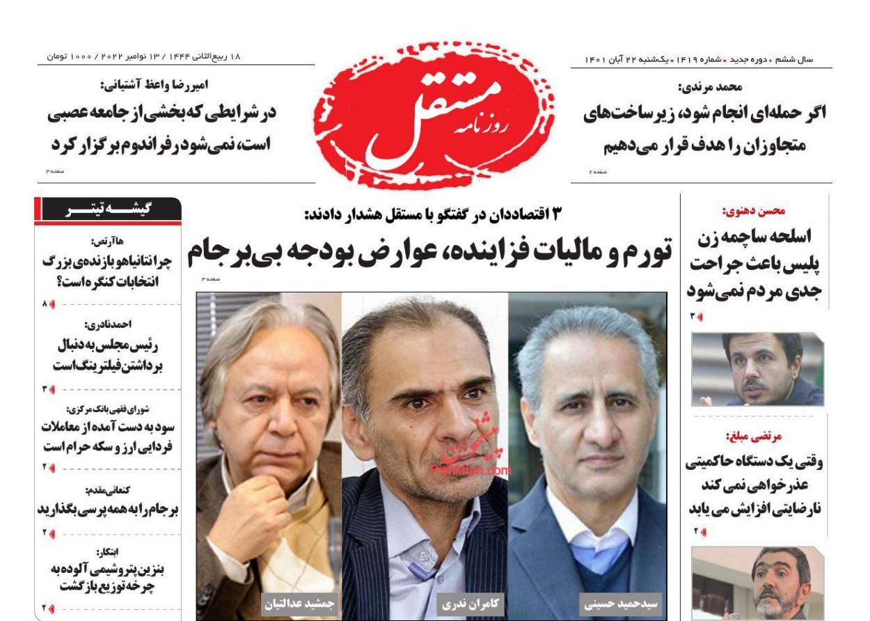 عصر ایرانیان ، یکشنبه ۲۲ آبان