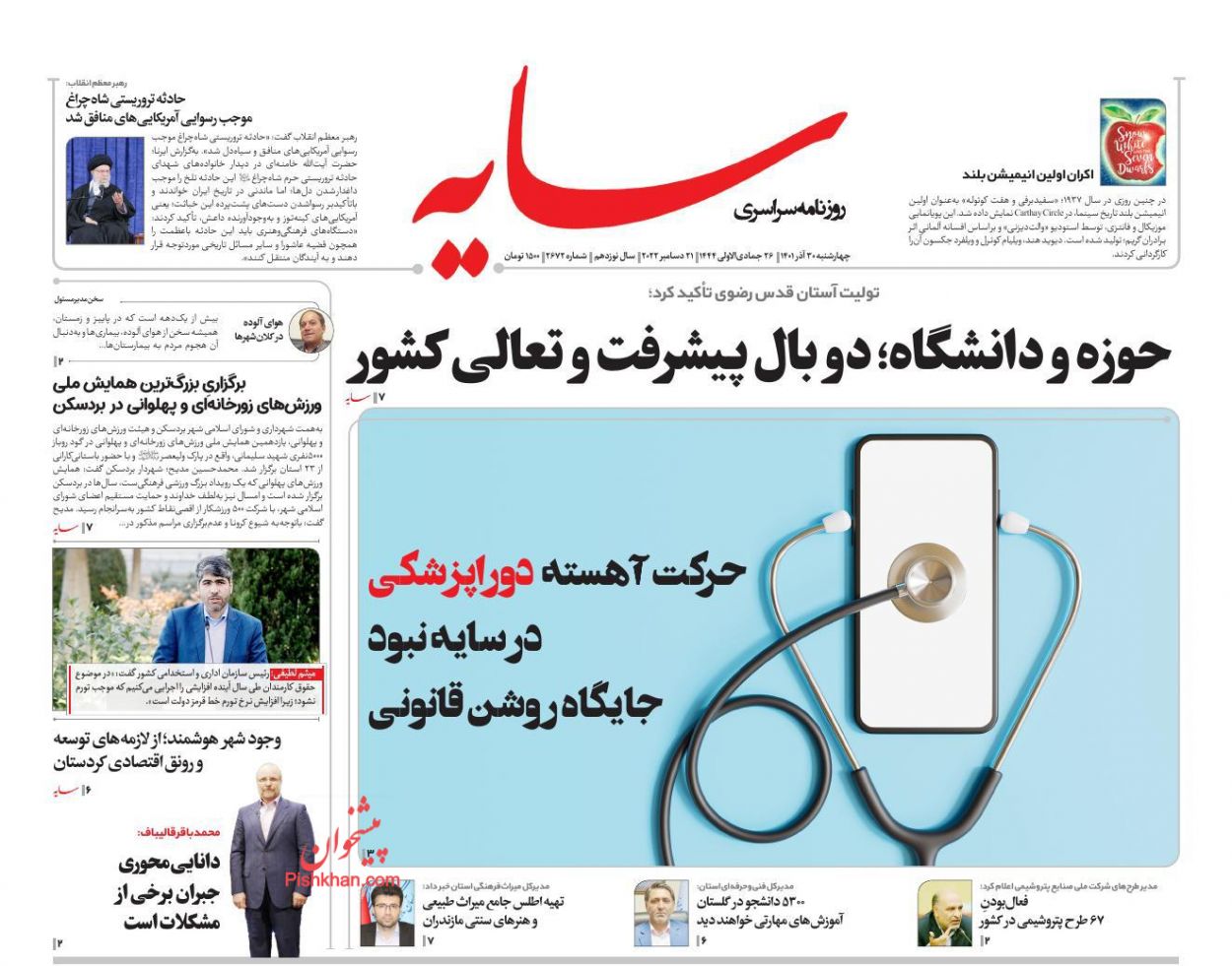 عصر ایرانیان ، چهارشنبه ۳۰ آذر