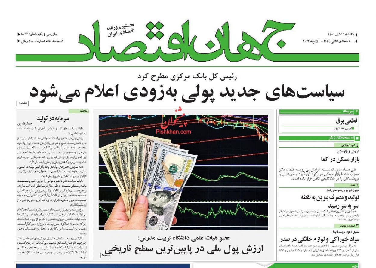 جهان اقتصاد ، یکشنبه ۱۱ دی