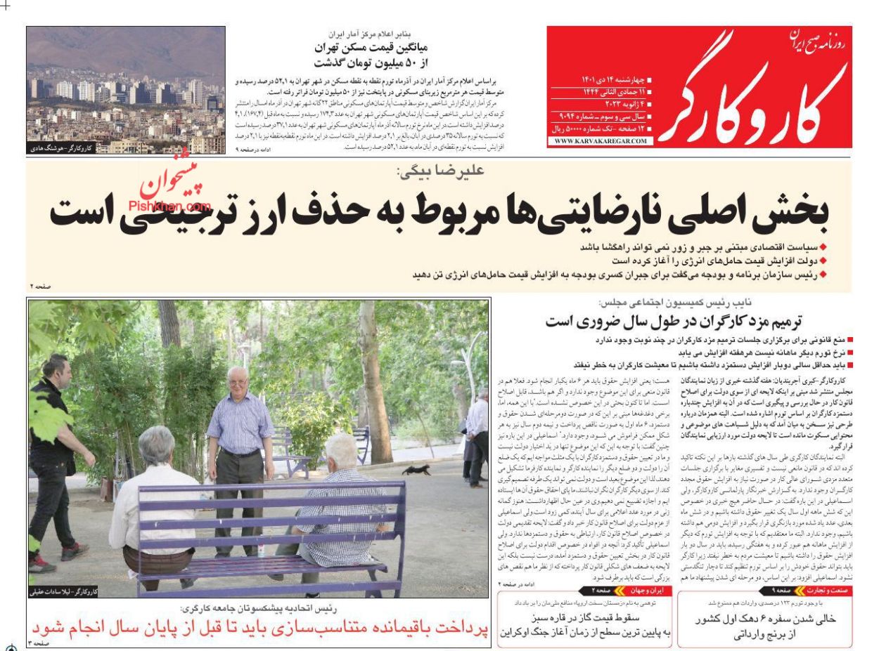 کار و کارگر ، چهارشنبه ۱۴ دی
