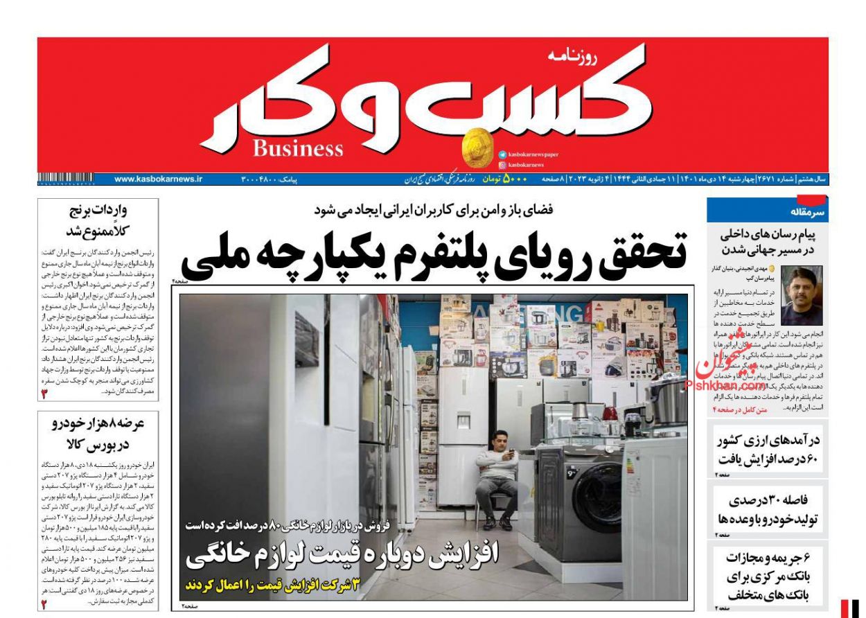 بازار کسب و کار ، چهارشنبه ۱۴ دی