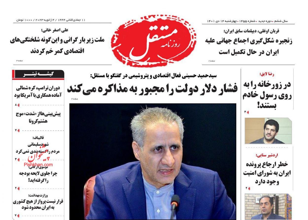 جمهوری اسلامی ، چهارشنبه ۱۴ دی