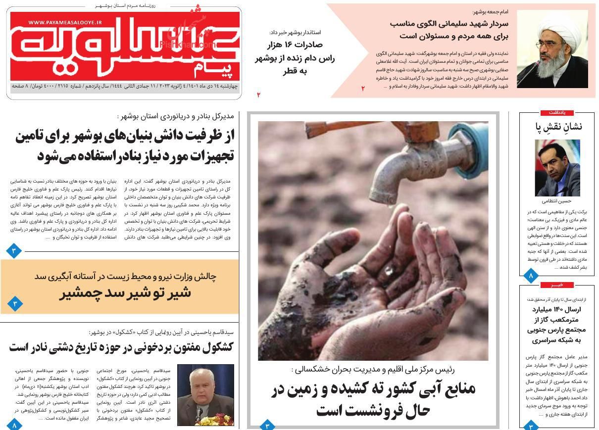 پیام عسلویه ، چهارشنبه ۱۴ دی