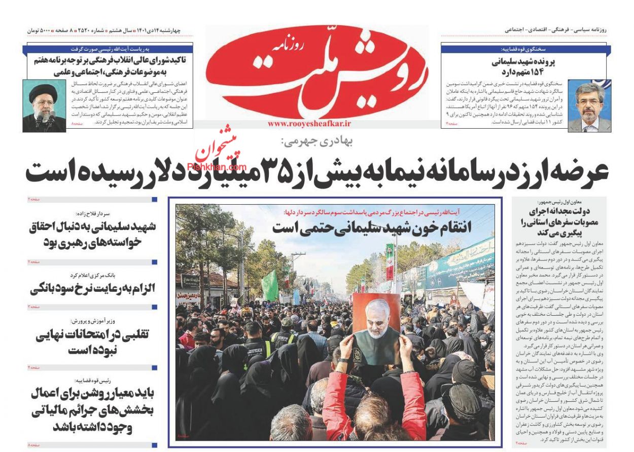 آرمان ملی ، چهارشنبه ۱۴ دی