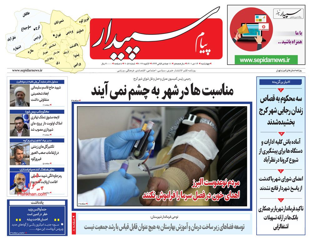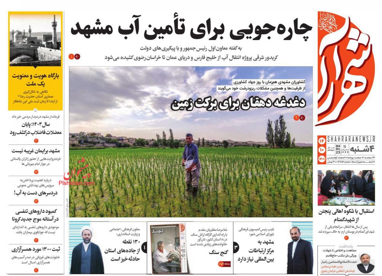 آفتاب یزد ، چهارشنبه ۱۴ دی