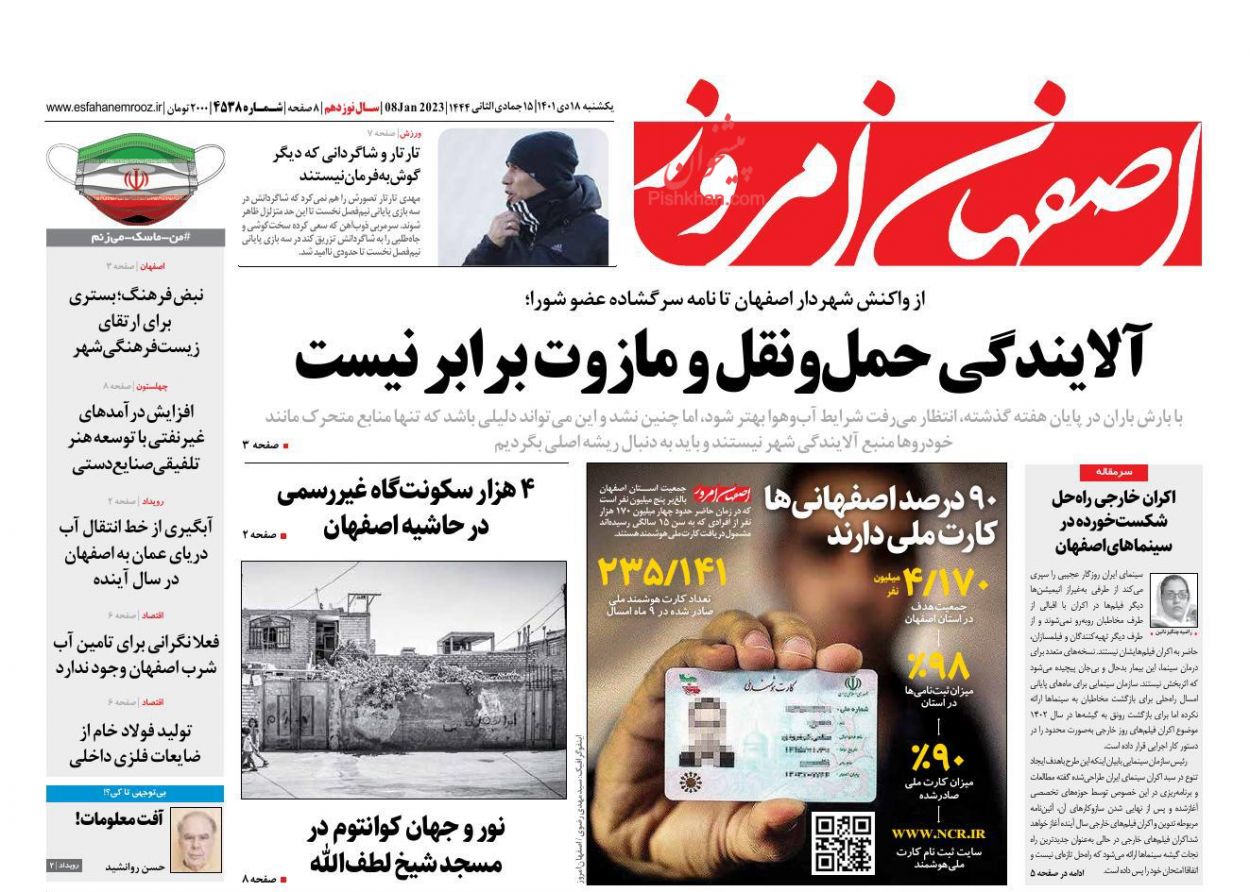 اصفهان امروز ، یکشنبه ۱۸ دی