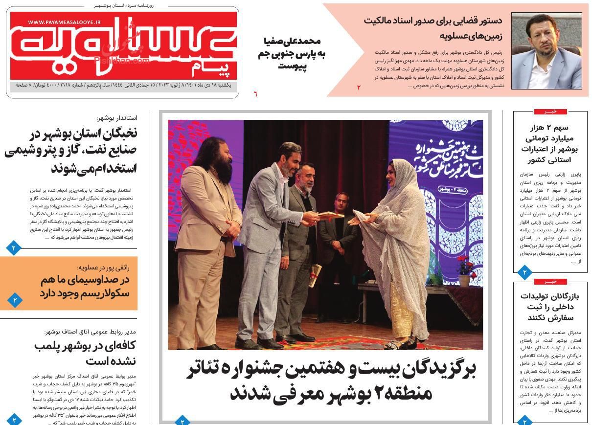 پیام عسلویه ، یکشنبه ۱۸ دی