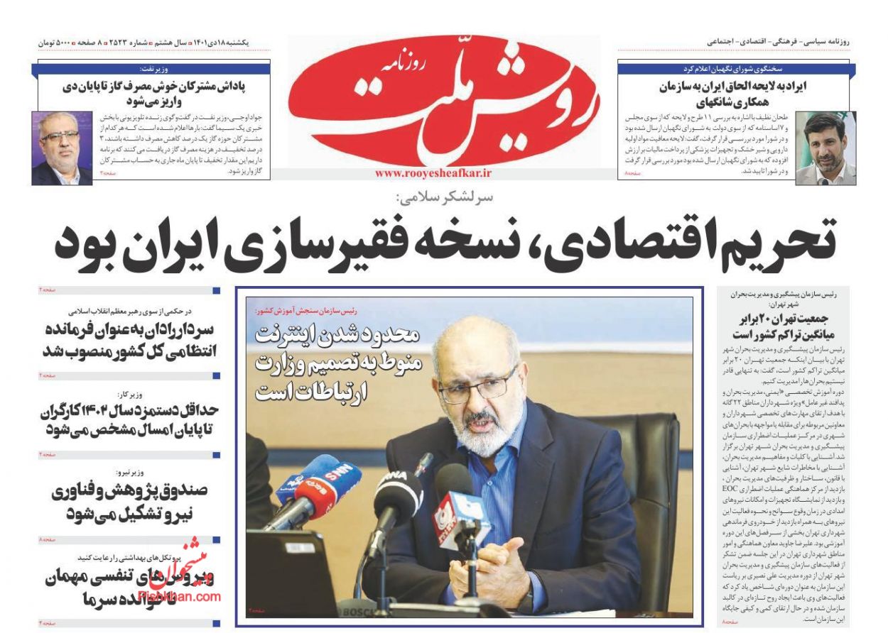 جمهوری اسلامی ، یکشنبه ۱۸ دی
