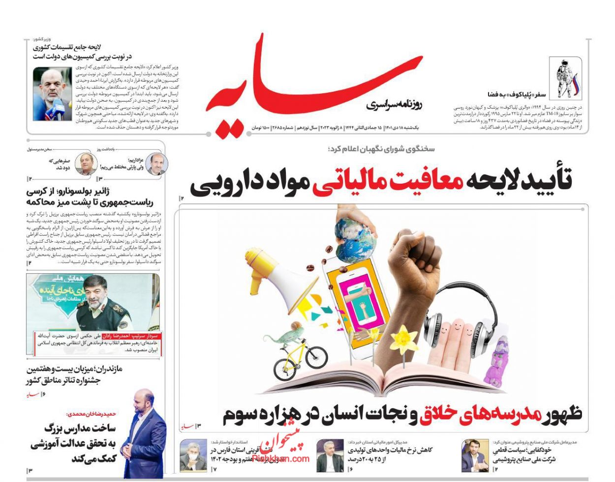 عصر ایرانیان ، یکشنبه ۱۸ دی