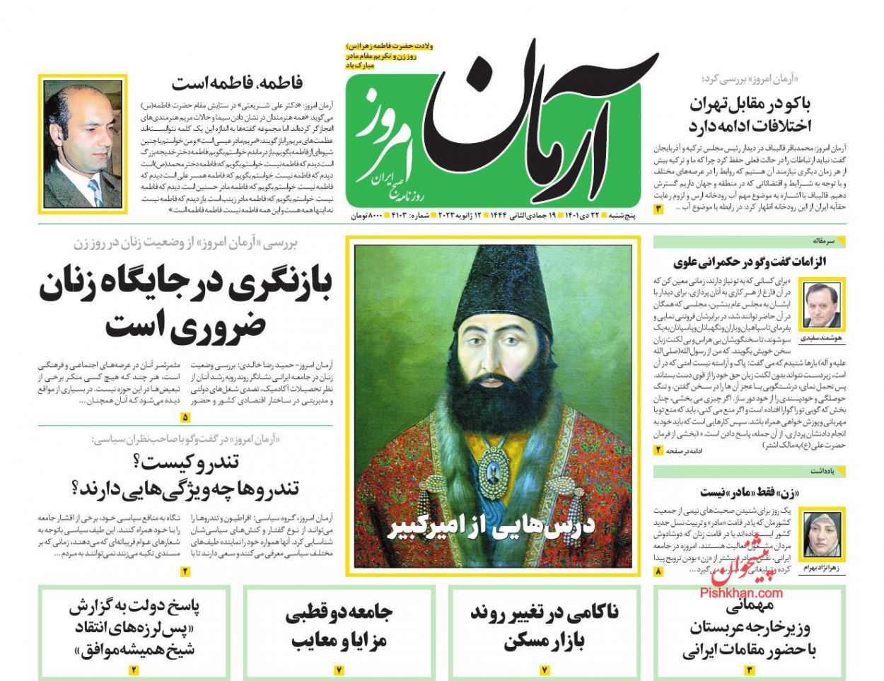 آرمان امروز ، پنجشنبه ۲۲ دی