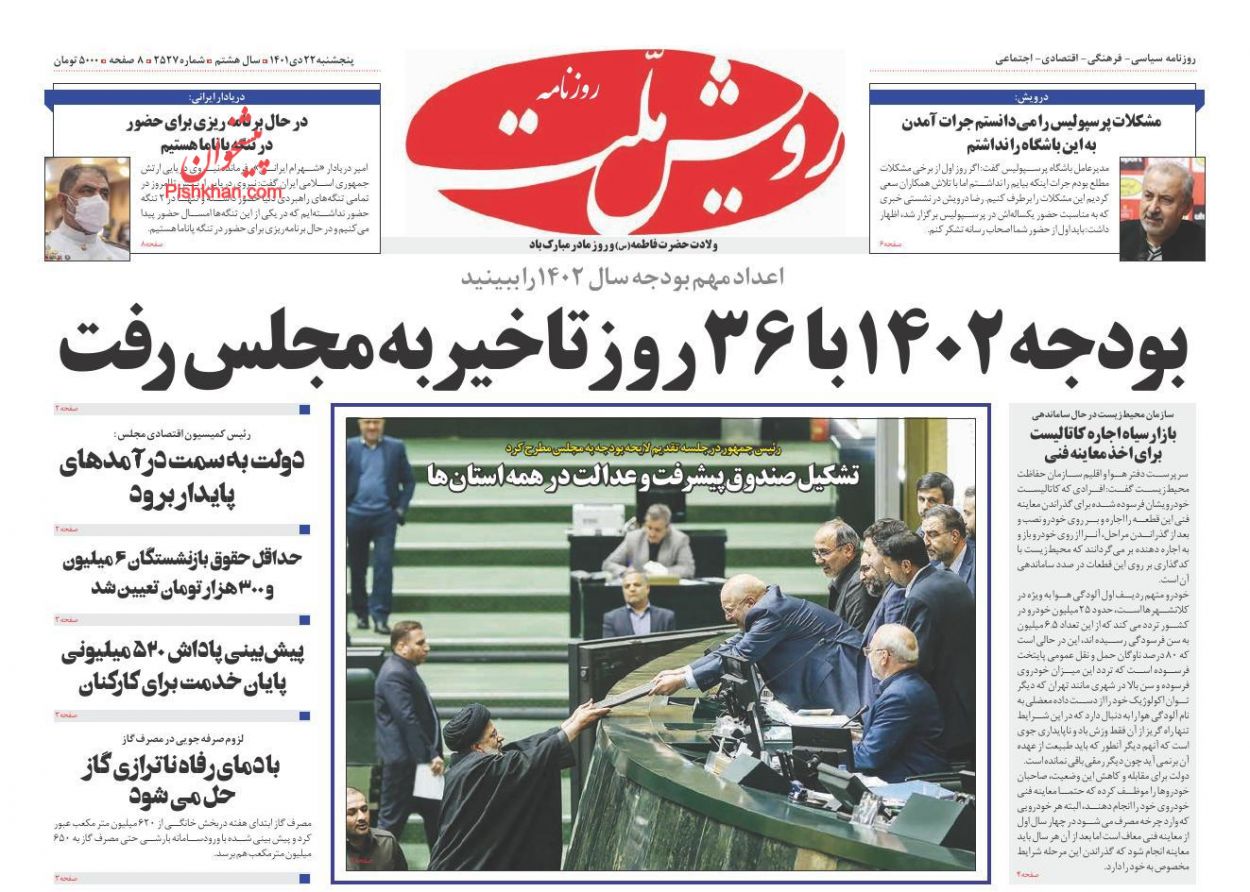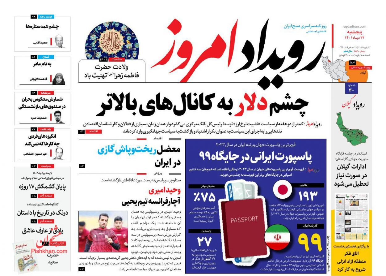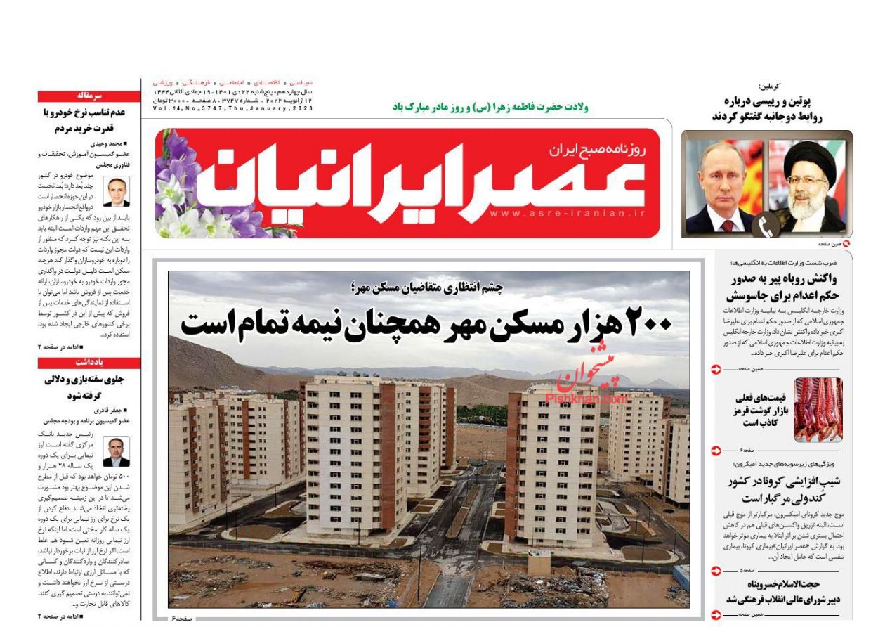 عصر ایرانیان ، پنجشنبه ۲۲ دی