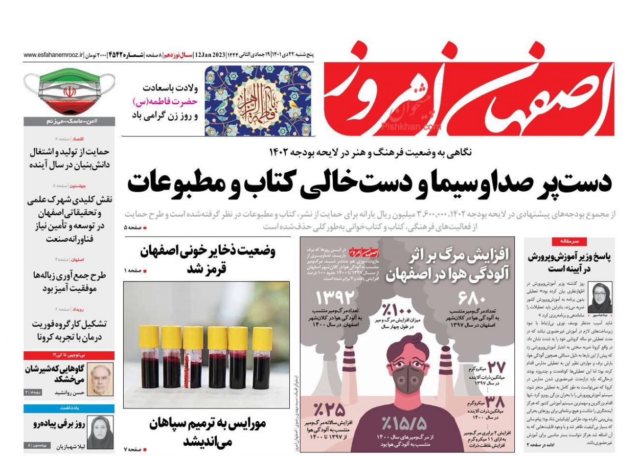 اصفهان امروز ، پنجشنبه ۲۲ دی