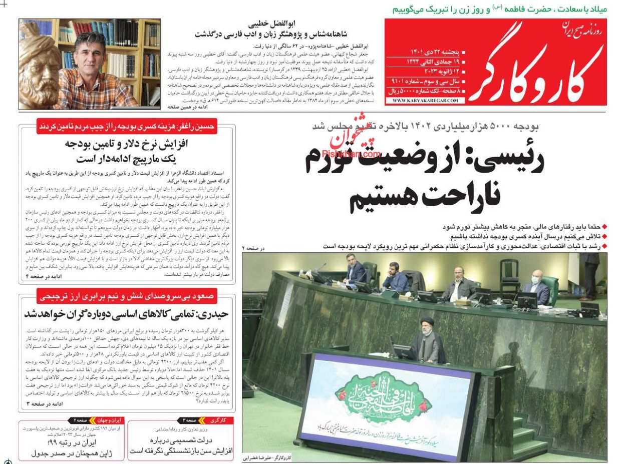 کار و کارگر ، پنجشنبه ۲۲ دی