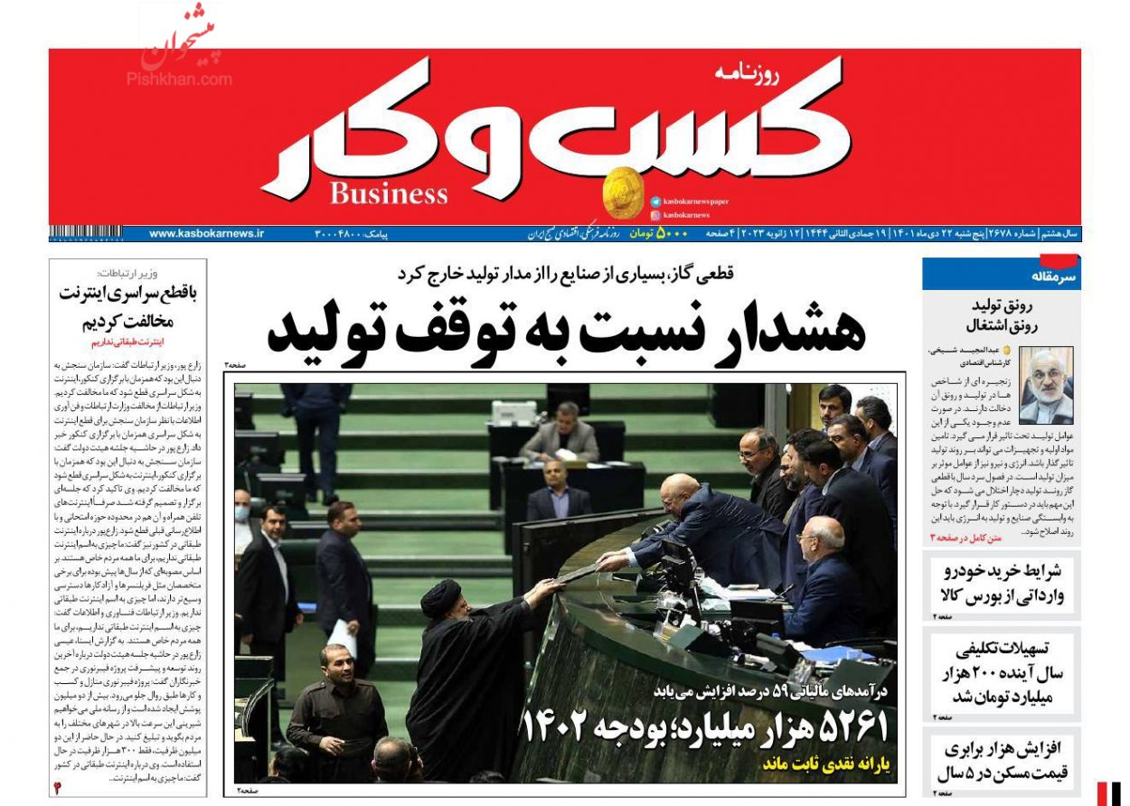 ابرار اقتصادی ، پنجشنبه ۲۲ دی