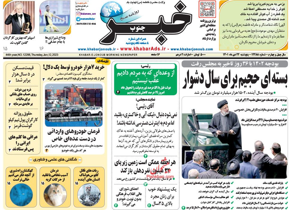 خبر جنوب ، پنجشنبه ۲۲ دی