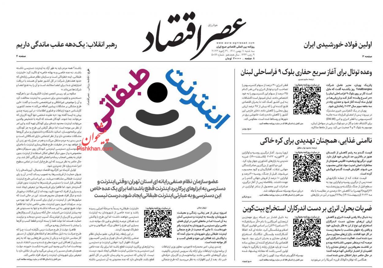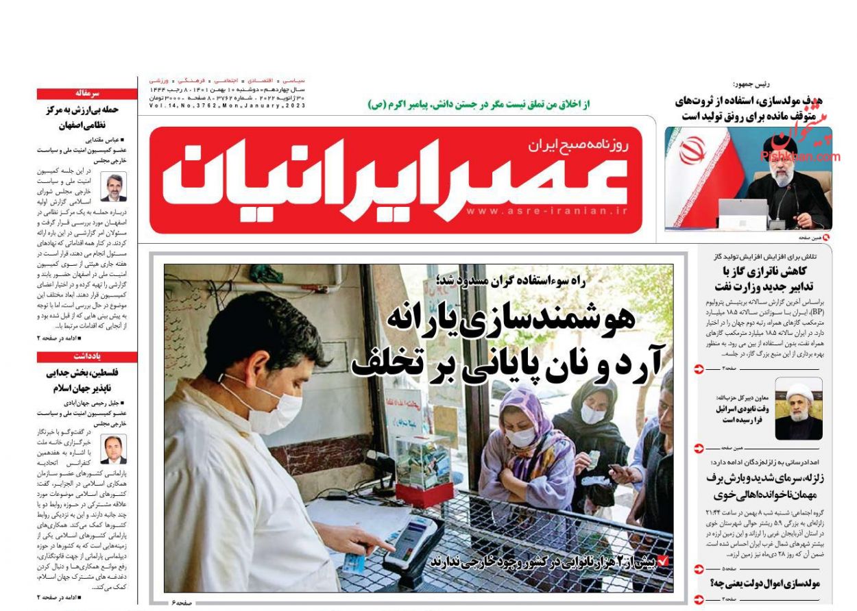 عصر ایرانیان ، دوشنبه ۱۰ بهمن