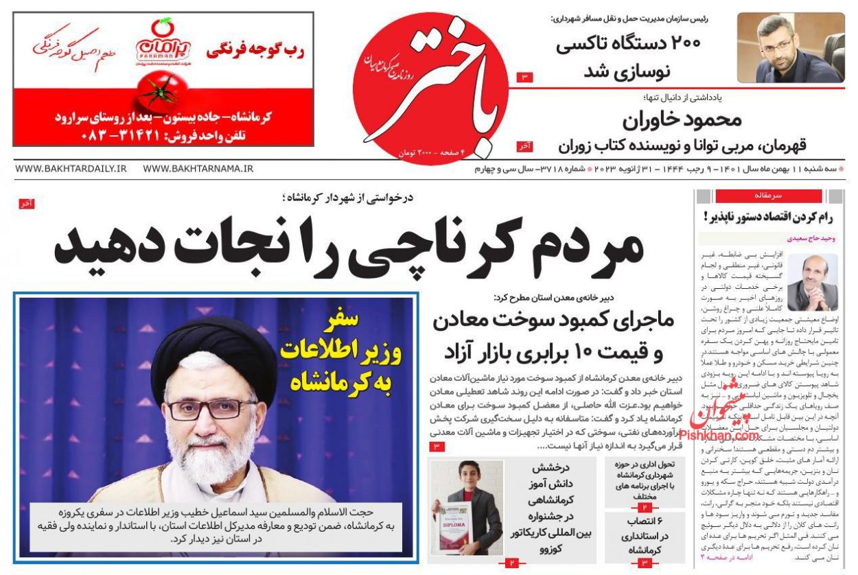 آفتاب یزد ، دوشنبه ۱۰ بهمن