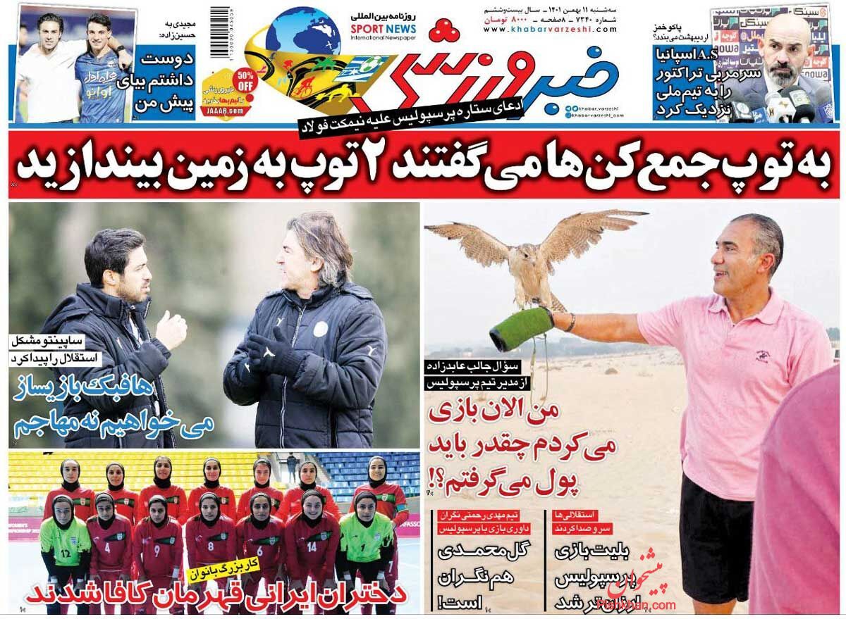 ایران ورزشی ، سهشنبه ۱۱ بهمن