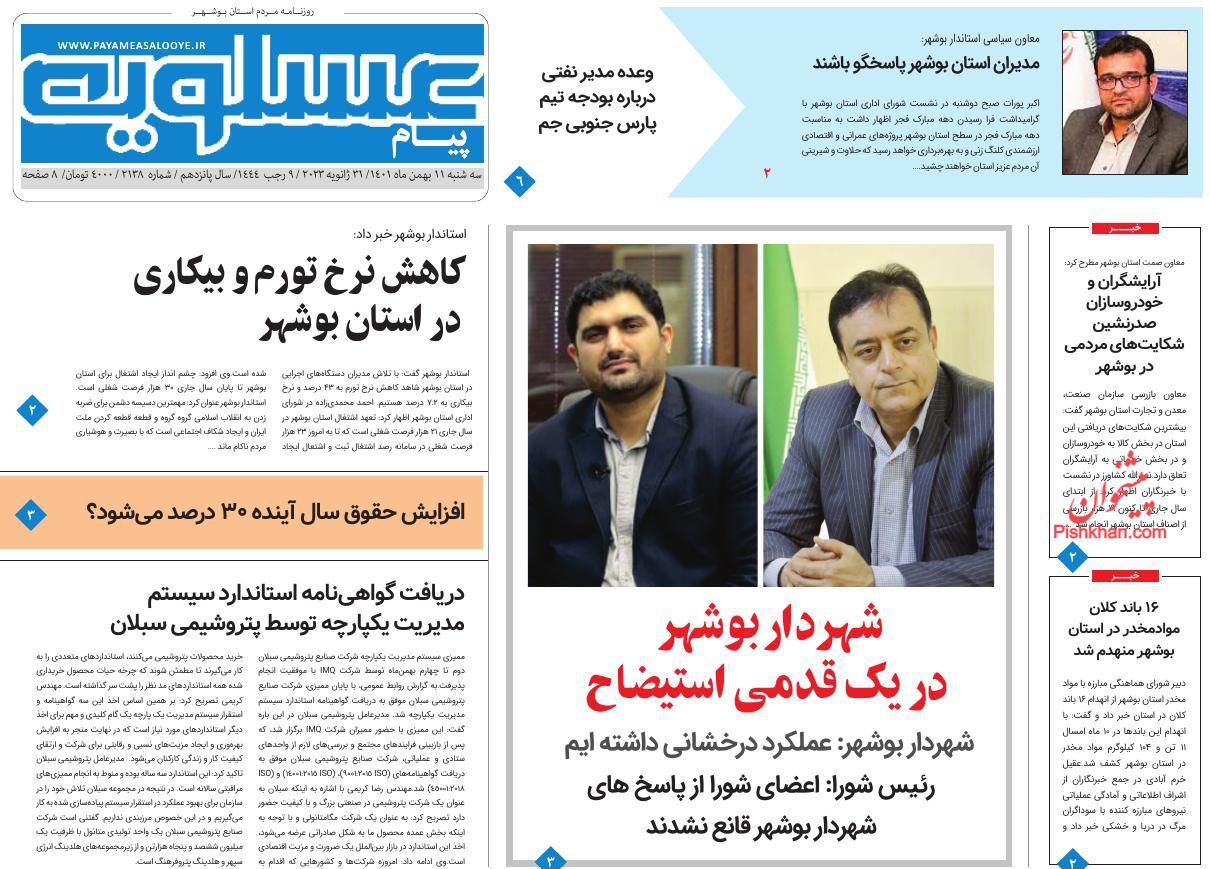 پیام عسلویه ، سهشنبه ۱۱ بهمن