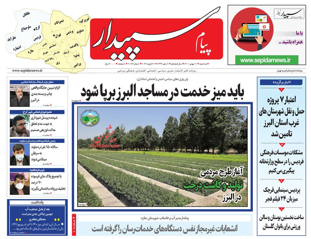 پیام سپیدار ، سهشنبه ۱۱ بهمن