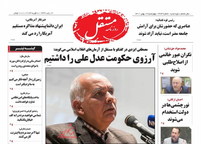 مستقل ، چهارشنبه ۱۹ بهمن