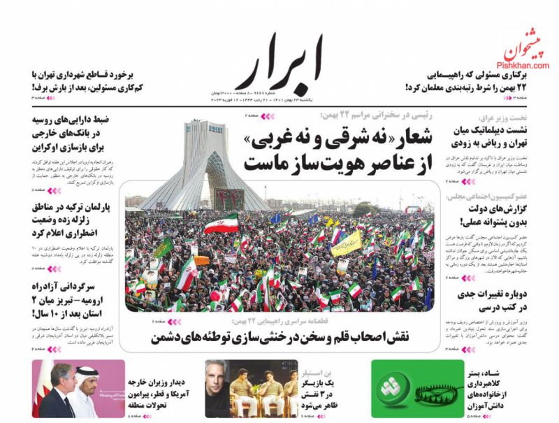 ابرار ، یکشنبه ۲۳ بهمن