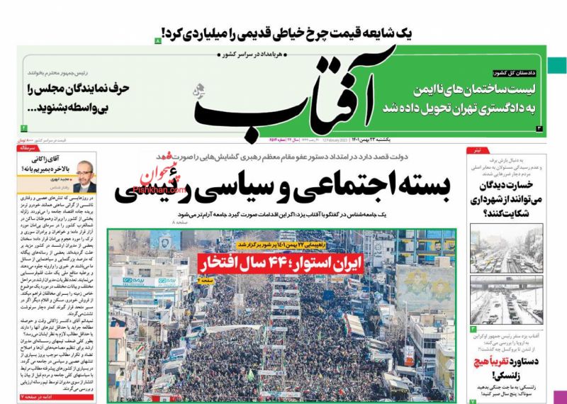 آفتاب یزد ، یکشنبه ۲۳ بهمن
