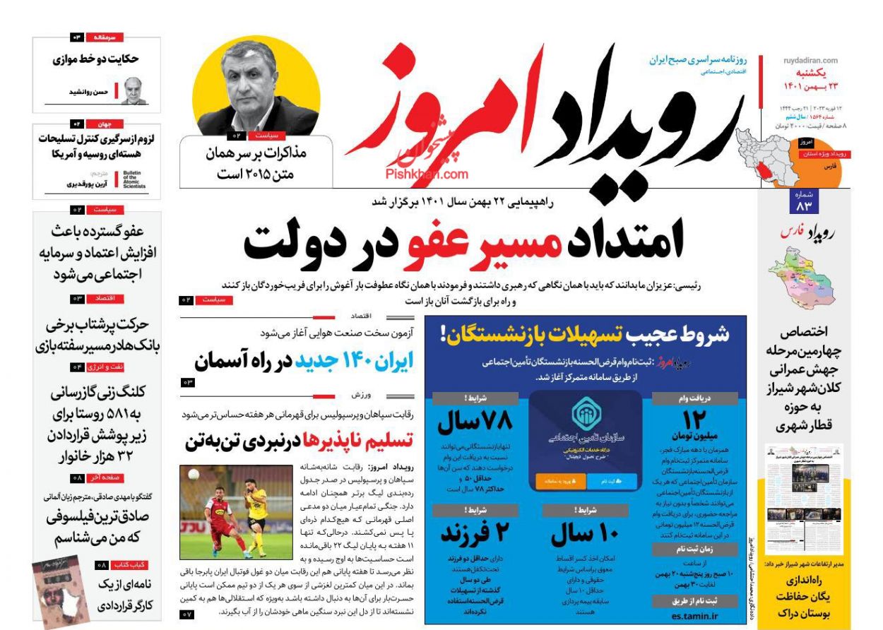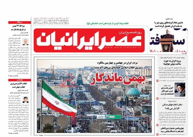 عصر ایرانیان ، یکشنبه ۲۳ بهمن