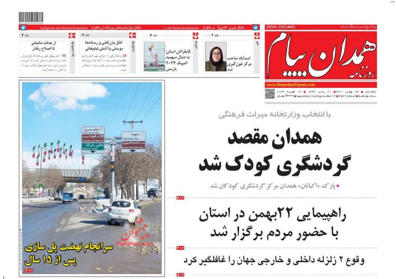 همدان پیام ، یکشنبه ۲۳ بهمن