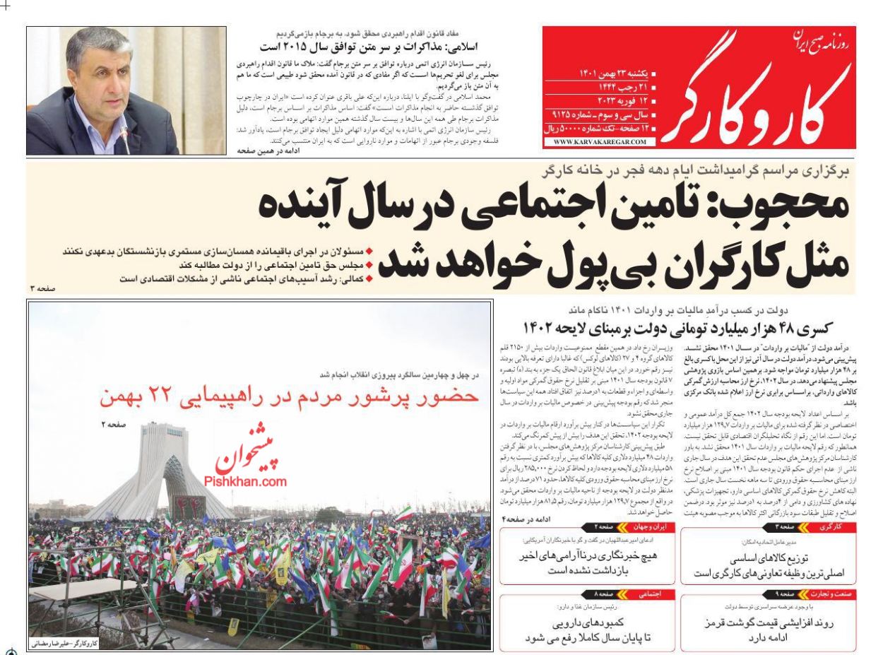 کار و کارگر ، یکشنبه ۲۳ بهمن