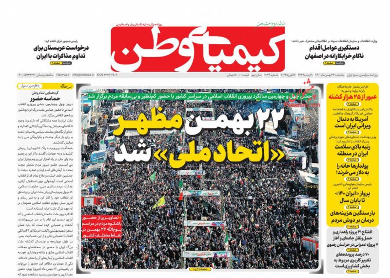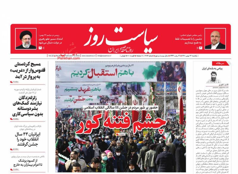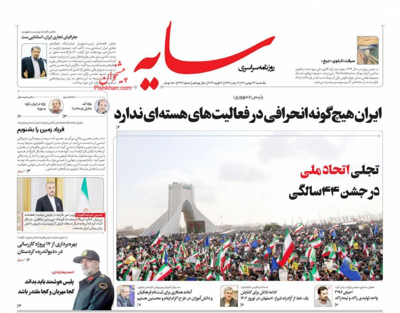جمهوری اسلامی ، یکشنبه ۲۳ بهمن