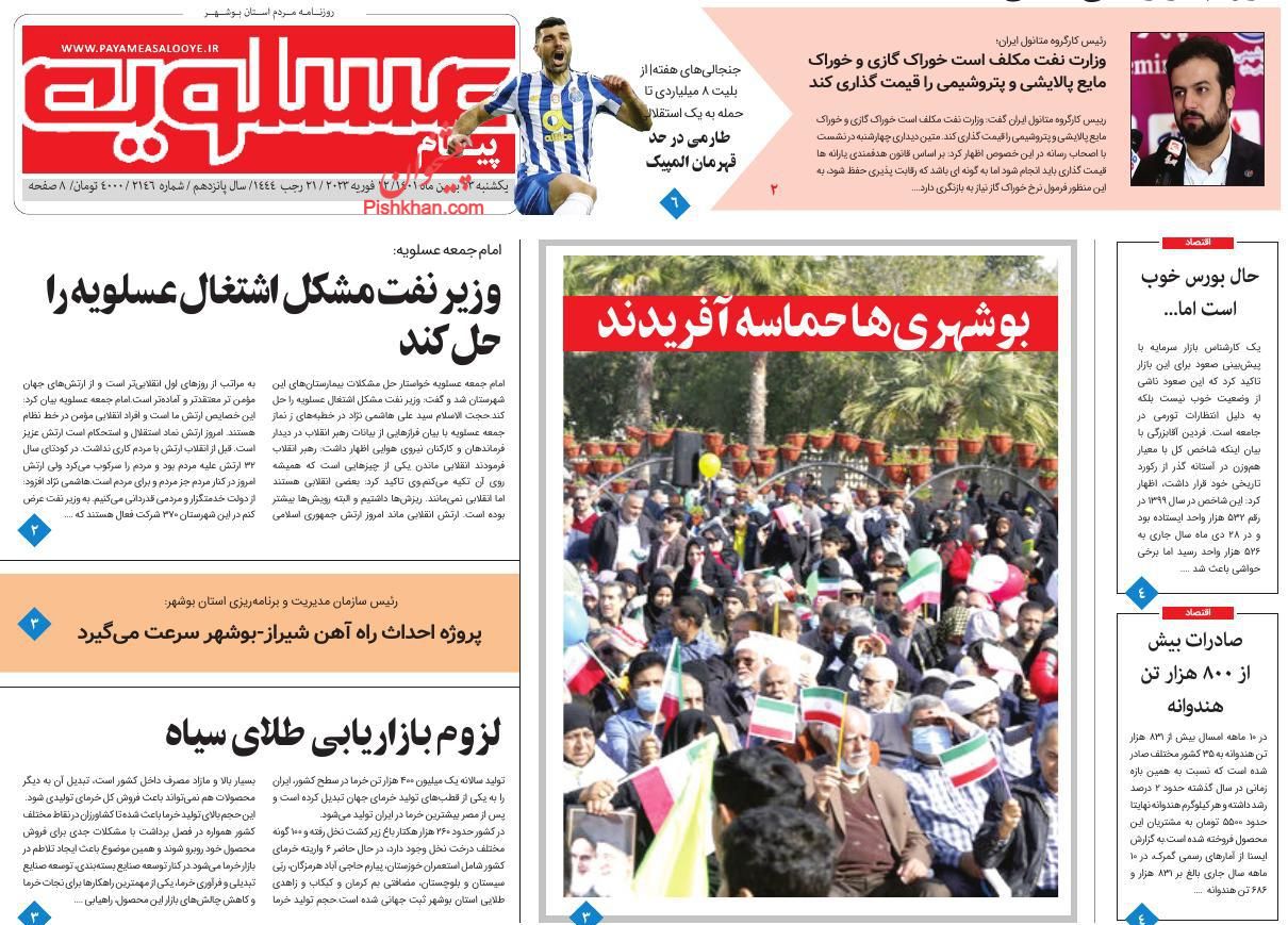 پیام عسلویه ، یکشنبه ۲۳ بهمن
