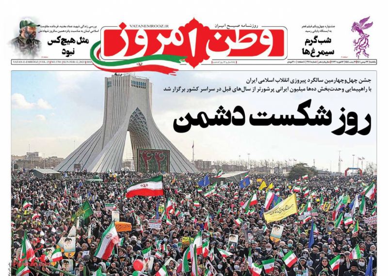 وطن امروز ، یکشنبه ۲۳ بهمن