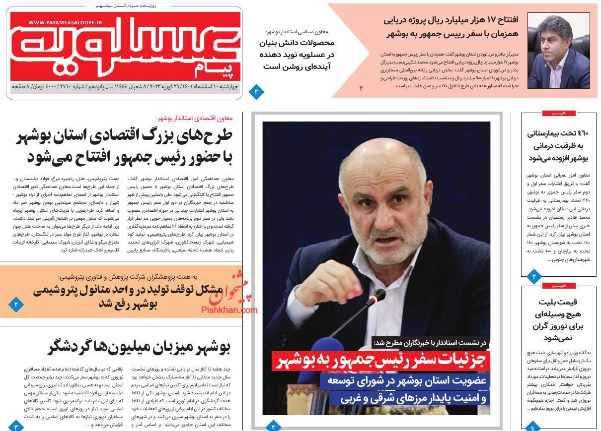 پیام عسلویه ، چهارشنبه ۱۰ اسفند