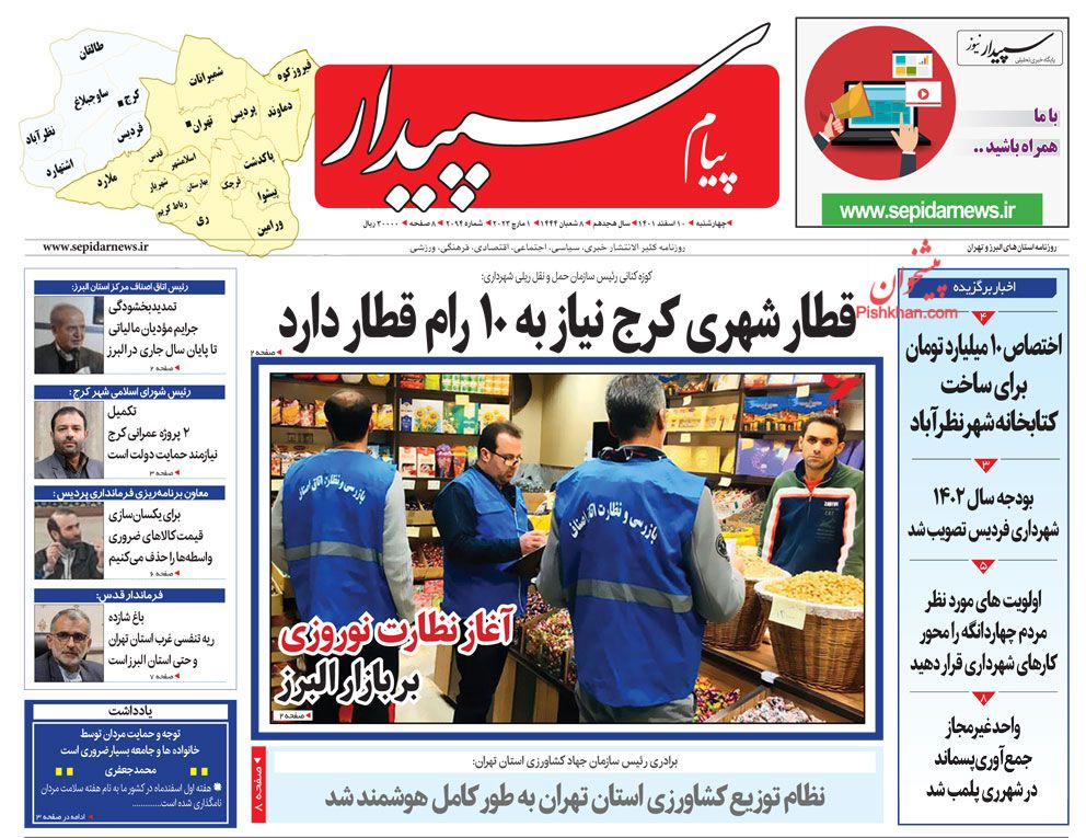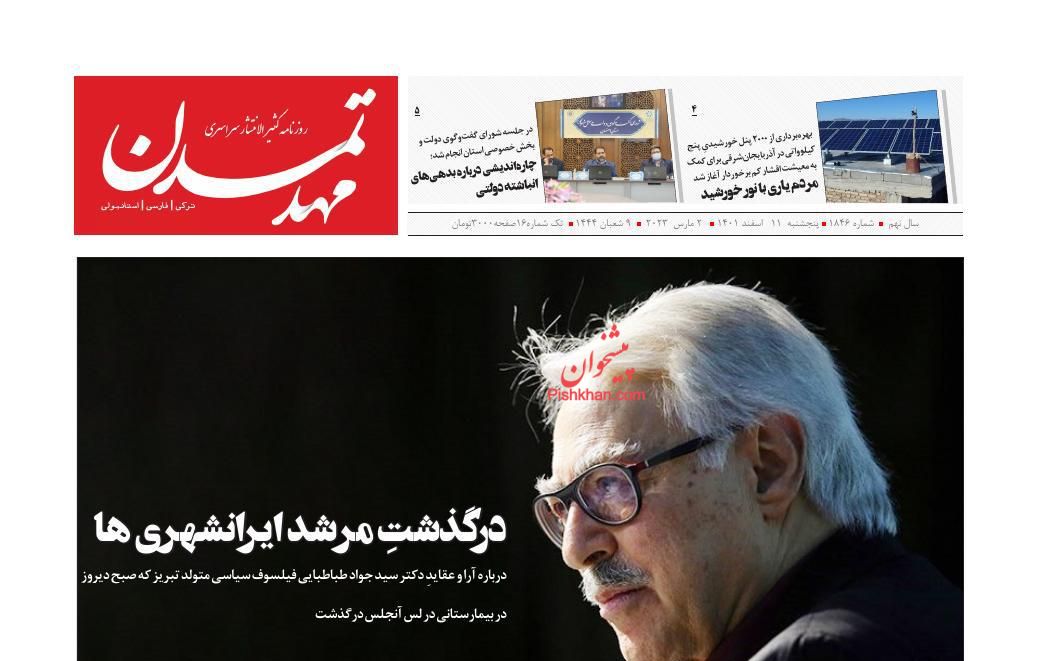 سپهر ایرانیان ، سهشنبه ۹ اسفند