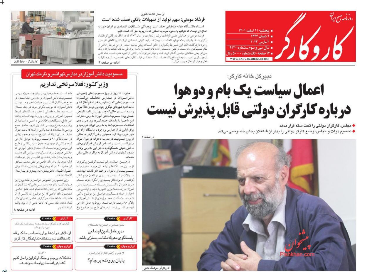 کار و کارگر ، پنجشنبه ۱۱ اسفند
