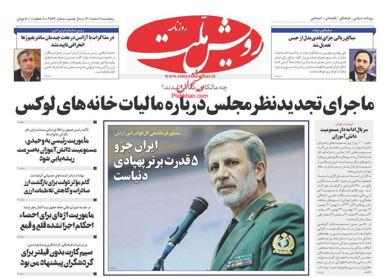 وطن امروز ، پنجشنبه ۱۱ اسفند