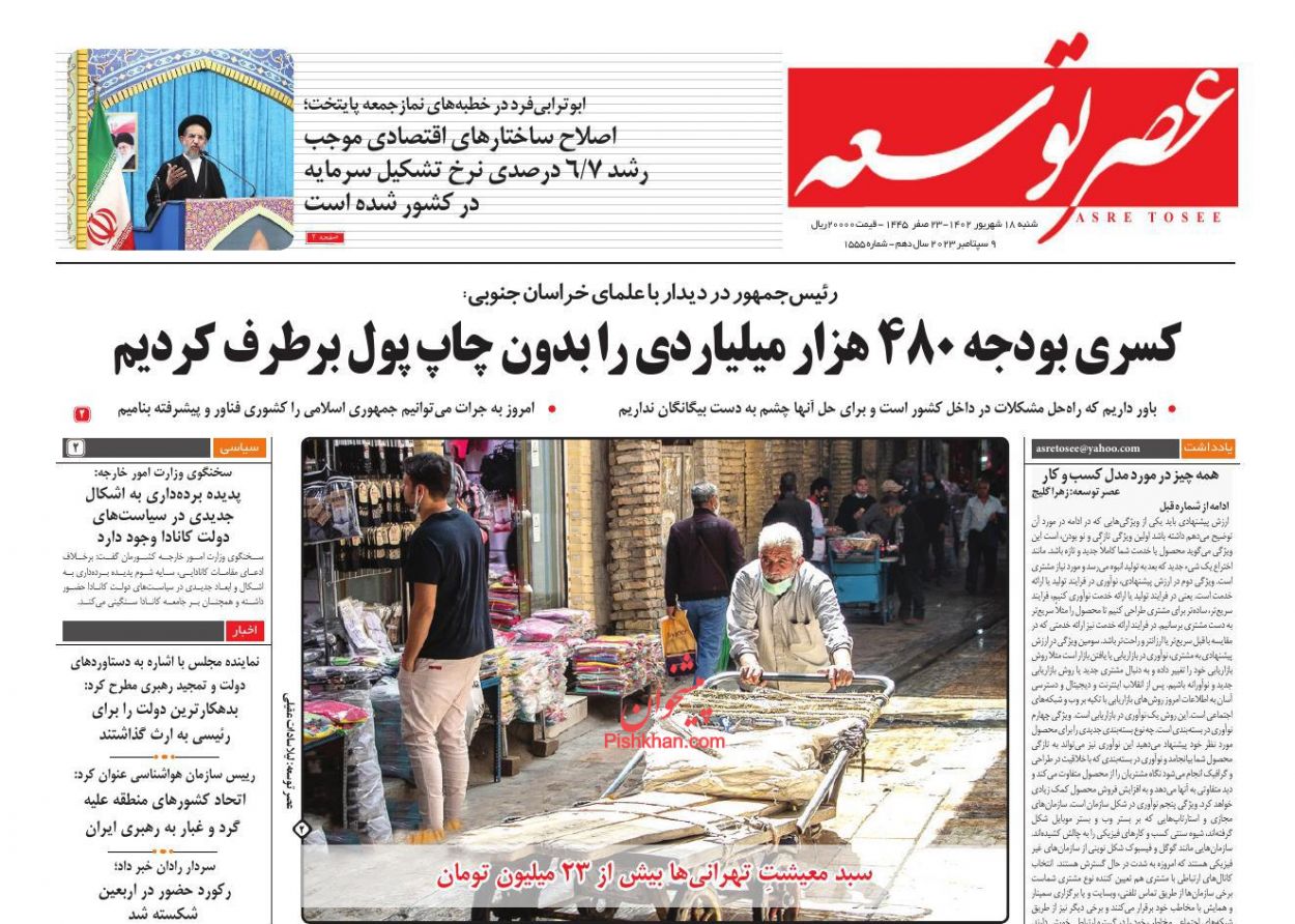 اقتصاد سرآمد ، شنبه ۱۸ شهريور