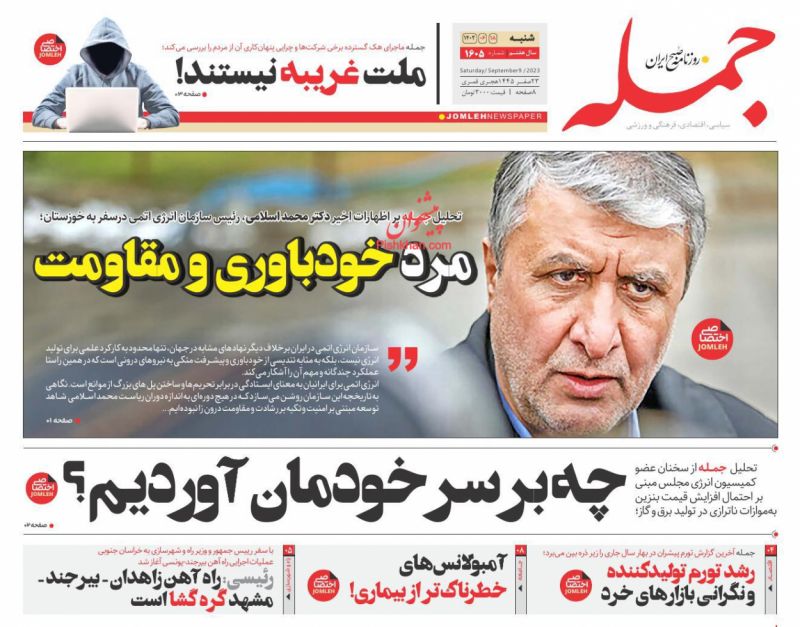 جمهوری اسلامی ، شنبه ۱۸ شهريور