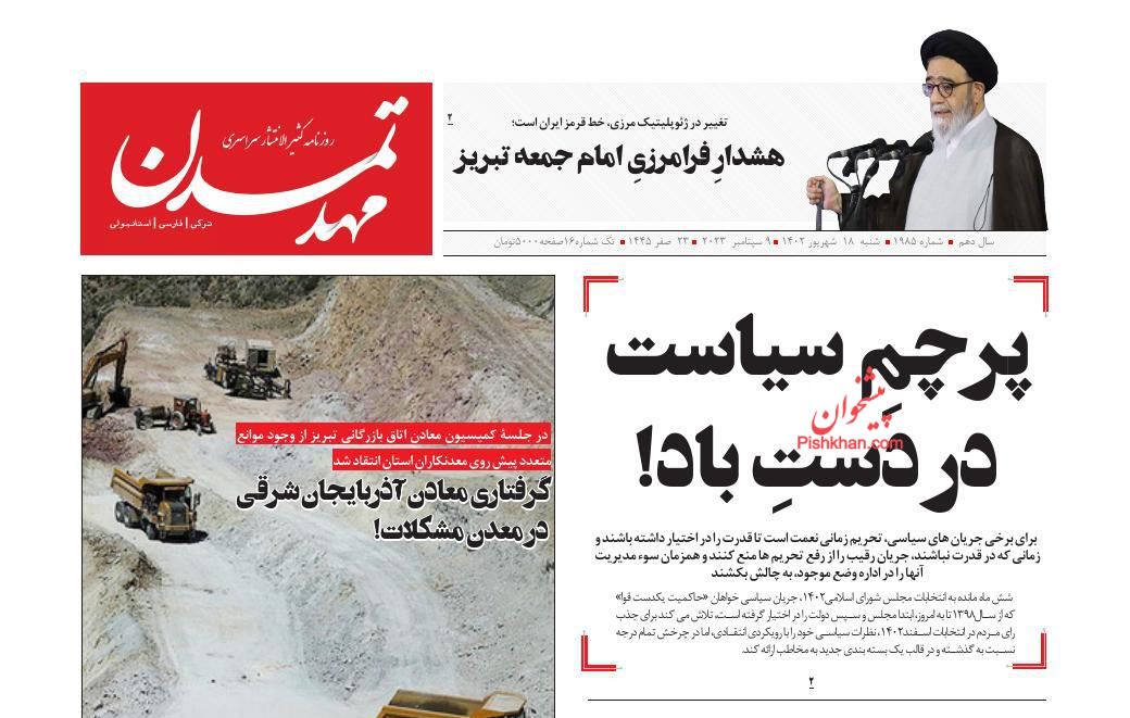 آفتاب یزد ، شنبه ۱۸ شهريور