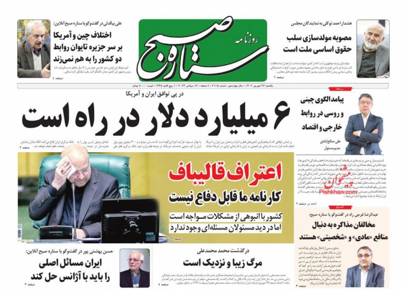 جمهوری اسلامی ، یکشنبه ۲۶ شهريور
