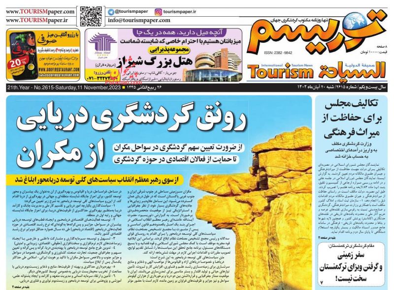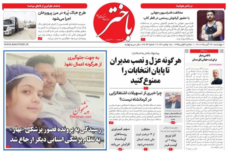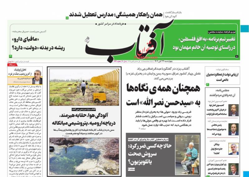 آفتاب یزد ، چهارشنبه ۲۴ آبان